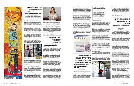 Второй номер журнала TATLIN NEWS, как впрочем, и предыдущие, славен не только обложкой, но и тем, что под ней. Прежде всего, это интервью: в рубрике EVENTS Йени Осльдсен (архитектурное бюро SNØHETTA) и Карло Ратти рассказали о собственных проектах; португальско-итальянско-английский куратор Филипа Рамос поделилась своим взглядом на современное искусство и роль художника; дизайнер Массимо Виньели рассказал, почему предпочитает Френка Гери Захе Хадид, а также в чем разница между дизайном и архитектурой. Дизайнер Луис Эслава утверждает, что «дизайн – это тот случай, когда количество переходит в качество» и призывает как можно больше работать, а Александр Рапопорт рассуждает о форме, функции, индивидуализации и гендерных стереотипах в архитектуре. Очень рекомендуется материал о велотреке в Крылатском (рубрика ARCHIVE), построенный как прямая речь архитектора Алексея Воронцова, а также рассказом о создании SPUN Chair Томаса Хезервика.