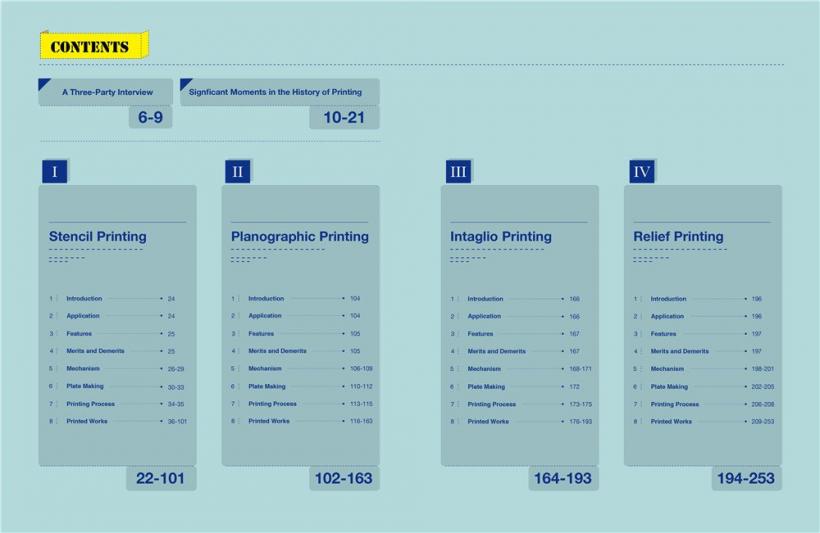 - The last section is divided into four chapters. Each of the four easy-to-understand chapters describes one printing method, illustrating its features and principles: how the printing plate is made, and how the printing process proceeds.