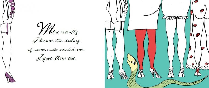 Noa the Boa is a slave to fashion with the heart of an actor and an obsession with celebrity. He becomes luxurious leather accessories for illustrious clients – from Grace Kelly’s pillow to the codpieces at the Folies Bergère – in a high-fashion gift book for adults that is whimsical, and a little bit naughty.