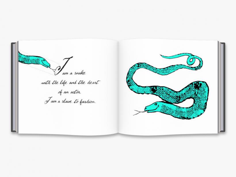 Never-before-published drawings by Andy Warhol, telling the story of a cheeky snake and the glittering constellation of celebrities that surround him