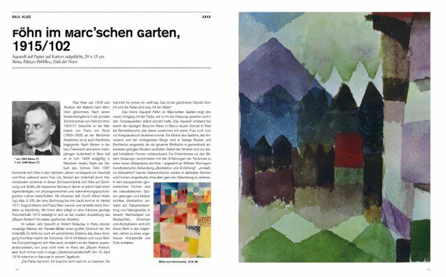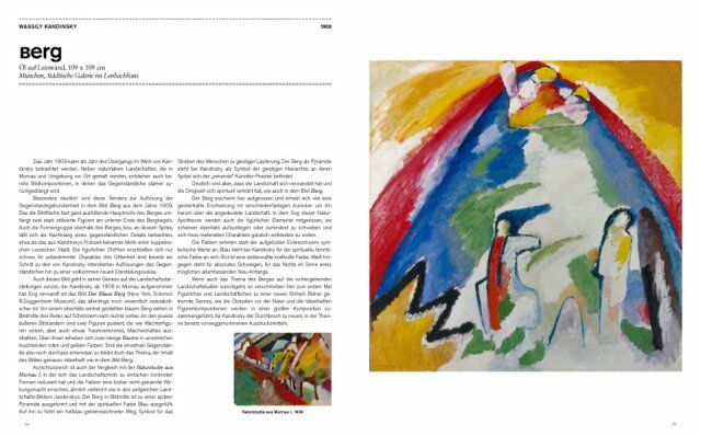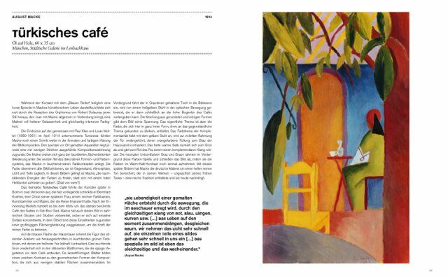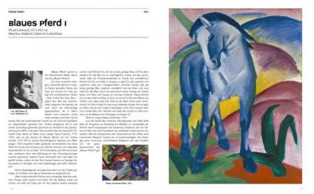 * a selection of the most important works of the epoch; each is presented on a 2-page spread with a full-page image and, on the facing page, a description/interpretation of the work and brief biography of the artist as well as additional information such as a reference work, portrait of the artist, and/or citations
