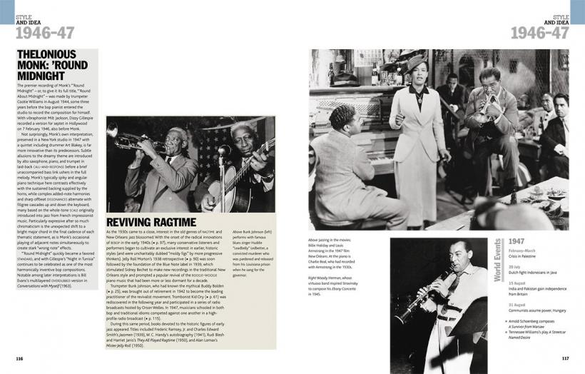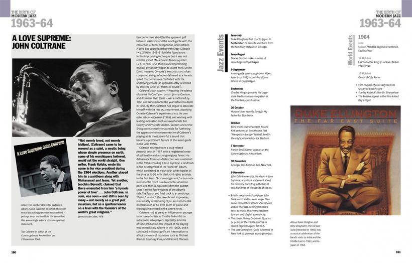 It features hundreds of illustrations and rare images, from record-cover artwork to pictures of live performances, and is accompanied by an accessible and wide-ranging text that turns music into words and histories into living images. Each chronologically arranged section contains special features, on topics ranging from the bossa nova craze to jazz in Paris, personality sketches and seminal gigs and albums.