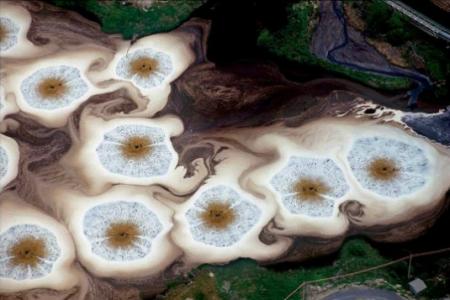 Primarily through the use of aerial photography, Fair captures spellbinding vistas of pools of toxic hog waste, streams of paper mill runoff, and the remains of hollowed-out mountains. These environmental abstractions lure the viewer in with unique asymmetrical shapes and striking colors; however, fascination quickly turns to horror, as the viewer realizes what lurks beneath the surface of the image.