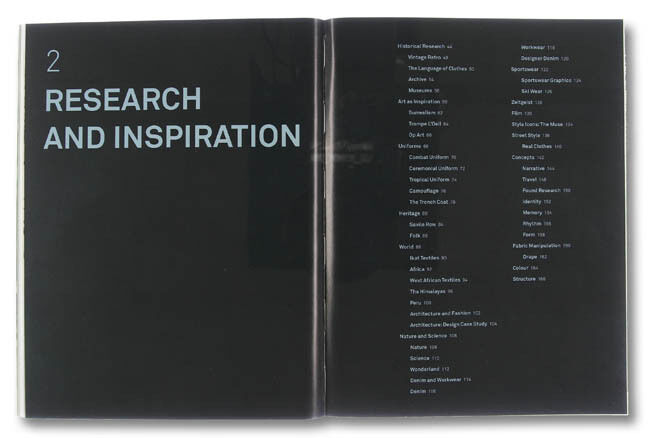 • Historical Research • Art as Inspiration • Uniforms • Heritage • World Architecture and Fashion • Nature and Science • Denim and Workwear • Sportswear • Zeitgeist • Film • Style Icons • Street Style • Concepts • Fabric Manipulation • Colour • Structure