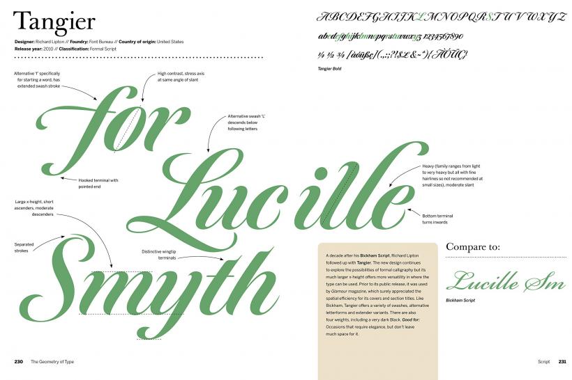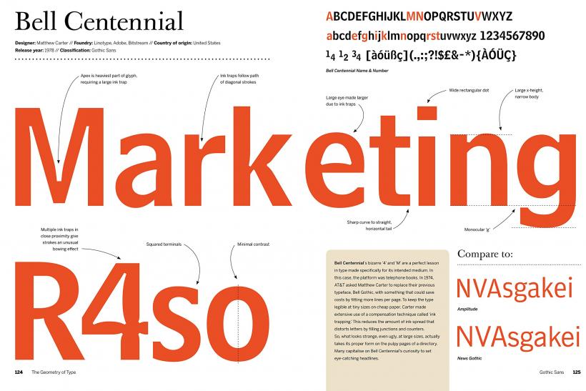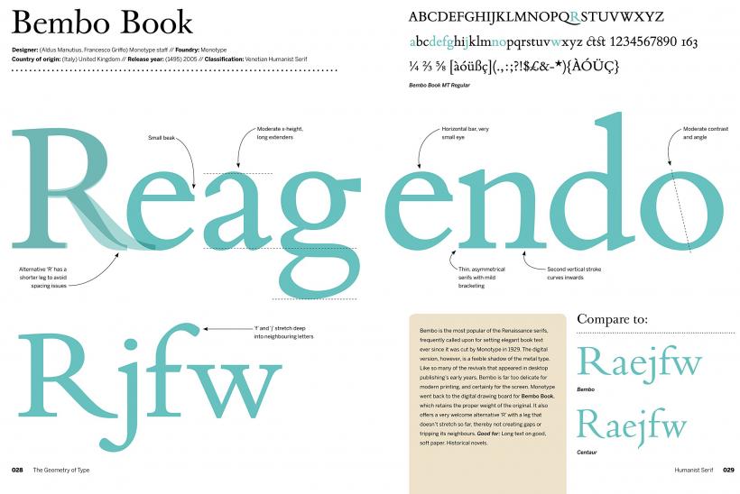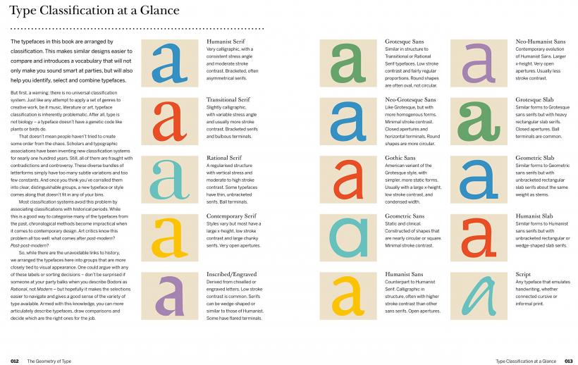 The Geometry of Type explores 100 traditional and modern typefaces in detail, with a full spread devoted to each entry.