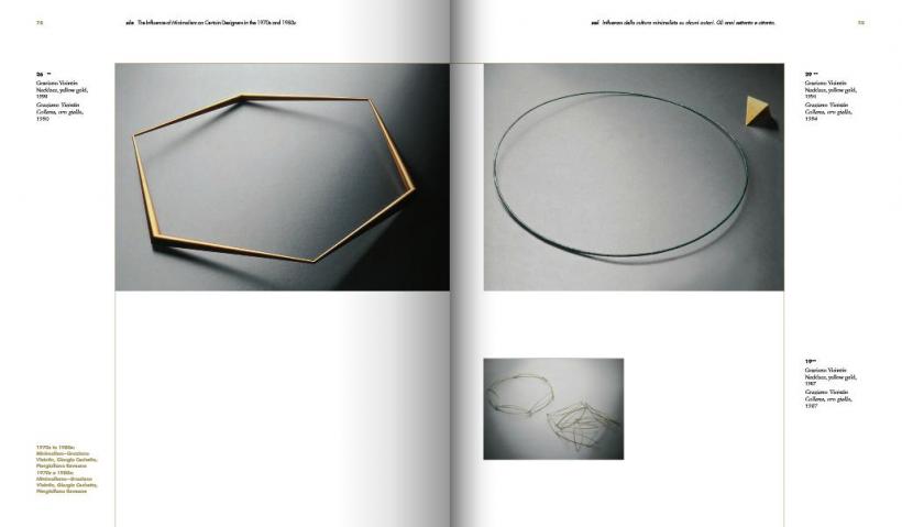The breakthrough on the international jewelry scene took place in the late 1960s with Giampaolo Babetto, under whose support the geometric and Minimalist tendency was most pronounced. Other distinguished artists in jewelry such as Graziano Visintin, Renzo Pasquale, Annamaria Zanella, Stefano Marchetti and Giovanni Corvaya continued along these lines or went their own highly individual ways by experimenting with the use of new materials including plastic. The work of these creative artists is beautifully displayed through color photographs, which serve to highlight their great talent.