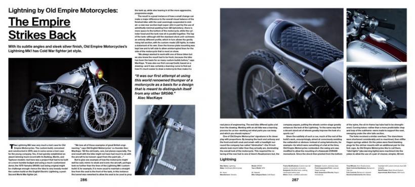 From limited series to one-offs, The Ride 2nd Gear features the brilliant results of this process. Its pages are filled with bikes that offer extraordinary design and driving experiences. In fact, established brands are now acting on trends set by the custom scene whose bikes are often more radical and sophisticated because more attention can be paid to detail and each new idea can be fine-tuned to perfection.