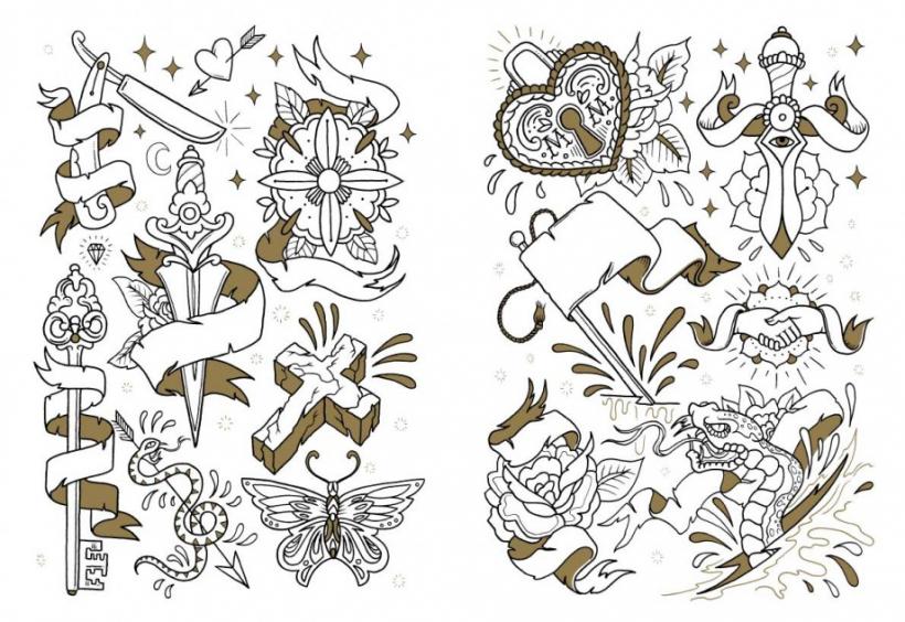 Packed with stunning illustrations, this unique colouring book celebrates the art of the tattoo. The tattoo designs – all specially drawn for the book – range from traditional motifs – hearts, sailors, girls, skulls, roses – to more elaborate compositions with a contemporary edge, each a unique piece waiting to be inked by you.