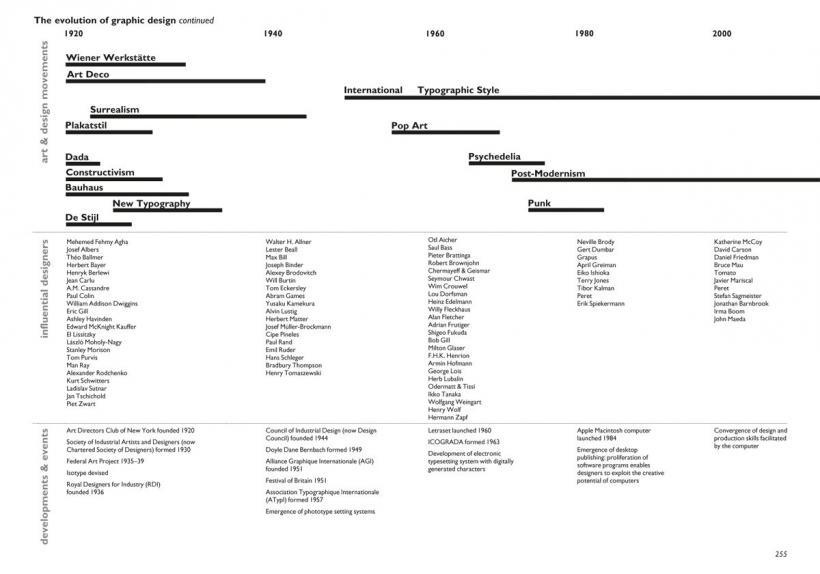 Extensive cross-references and a chronological chart outline the relationship between movements, technology and designers.
