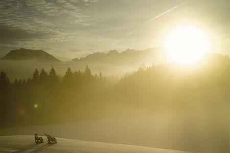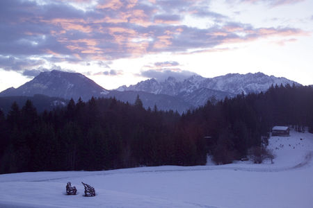 A series of panoramic photographs were taken of an alpine view from the balcony of a mountain lodge called the Rechenau, near Kiefersfelden in Bavaria. Maryam and Rolf Sachs focused their camera on two majestic mountain peaks, ‘Der Zahme Kaiser’ (The Tame Emperor) on the left and ‘Der Wilde Kaiser’ (The Wild Emperor) on the right, that lie over the German border in Austria. The discipline for the project was rigorous, throughout 2004 the camera, which was housed in a purpose built shelter shot over 50,000 photographs, each taken every 10 and half minutes. The pictures succeed in capturing nature’s ever changing moods.
