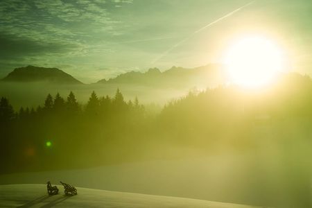 A series of panoramic photographs were taken of an alpine view from the balcony of a mountain lodge called the Rechenau, near Kiefersfelden in Bavaria. Maryam and Rolf Sachs focused their camera on two majestic mountain peaks, ‘Der Zahme Kaiser’ (The Tame Emperor) on the left and ‘Der Wilde Kaiser’ (The Wild Emperor) on the right, that lie over the German border in Austria. The discipline for the project was rigorous, throughout 2004 the camera, which was housed in a purpose built shelter shot over 50,000 photographs, each taken every 10 and half minutes. The pictures succeed in capturing nature’s ever changing moods.