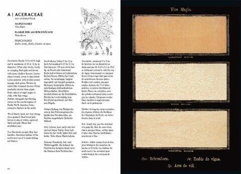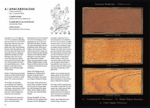 TASCHEN`s Wood Book reproduces, in painstaking facsimile, all of the specimen pages from the original volumes; for this purpose, we have obtained the use of an extremely rare original set of volumes in very good condition, with minimal damage to the woodcuts. For all trees, now arranged in alphabetical order, three different cross-section cuts of wood are represented (radial, horizontal, and vertical), demonstrating the particular characteristics of the grain and the wealth of colours and textures to be found among the many different wood types. Also included in this special edition are lithographs by Charles Sprague Sargent of the leaves and nuts of most trees, as well as texts describing the trees` geographical origins and physical characteristics.