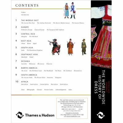 The Worldwide History of Dress covers every notable geographical region, historical period and style of costume worldwide – from Upper Paleolithic plant-fibre skirts, Ancient Egyptian linen shifts and Roman togas, through Mongolian shamanic robes, Japanese kimonos and Indian saris, to nineteenth-century Tyrolean dirndls, African ceremonial attire and Middle Eastern burqas.
