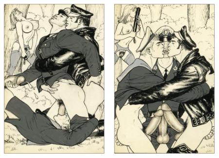 Touko Laaksonen, the boy who would become Tom of Finland (1920-1991), began drawing cartoons at age five. His favourite subjects were the rough manly men of his native Finland, as Touko knew from an early age that men interested him more than women. His talents were further honed by art study in Helsinki. He found success in the Finnish advertising industry but secretly continued creating his increasingly erotic drawings of hyper-masculine men. In 1957 he submitted some drawings to the American magazine Physique Pictorial and the "Tom of Finland" legend was born. By the late 60s Tom's "dirty drawings" became the standard for gay art, and Tom's Men a template for a new gay masculinity. Tom's art continues to play an important role in promoting self-confidence, positive self-image and openness in the gay community.
