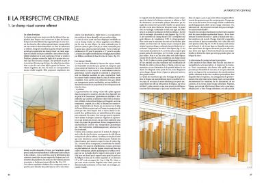 Cet important ouvrage s’attache à présenter la perspective traditionnelle construite sans tomber dans la facilité d’une vulgarisation toujours réductrice. À l’heure des procédés informatiques ce livre permet non seulement une compréhension profonde des implications de la perspective mais aussi d’assimiler les techniques permettant de réaliser des perspectives complexes. « La représentation de l’espace intérieur suit les règles courantes de la perspective et en respecte les conventions, elle a toutefois ceci de particulier qu’elle s’élabore à partir de notre perception d’un volume qui nous contient et qui se prolonge au-delà de notre champ visuel. C’est là une difficulté qui, dans de nombreux cas contraint le dessinateur à interpréter ces règles et ces conventions. La perspective est davantage qu’une simple construction géométrique, elle est aussi un mode d’expression capable de « rendre » nos impressions spatiales les plus fines. Elle n’est pas autre chose que du dessin, c’est-à-dire le contraire d’un procédé de nature mécanique. »