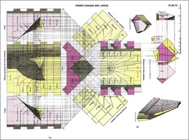 L’ouvrage original de 1889 était composé de deux volumes ; les magnifiques planches du tracé des épures (parfois doubles) aquarellées en trois couleurs étaient séparées du texte. La présente réédition en un seul volume présente le texte original (en typographie moderne) vis à vis de chaque planche reproduite en fac-similé.