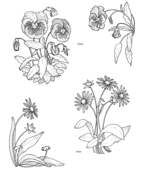 A hundred garden favorites rendered in black-and-white line illustrations will suggest numerous design and artistic uses to artists, designers, craftsmen, needleworkers. Amaryllis, anemone, begonia, cinquefoil, peony, snapdragon flow and weave, many forming borders and frames. All drawings royalty-free.