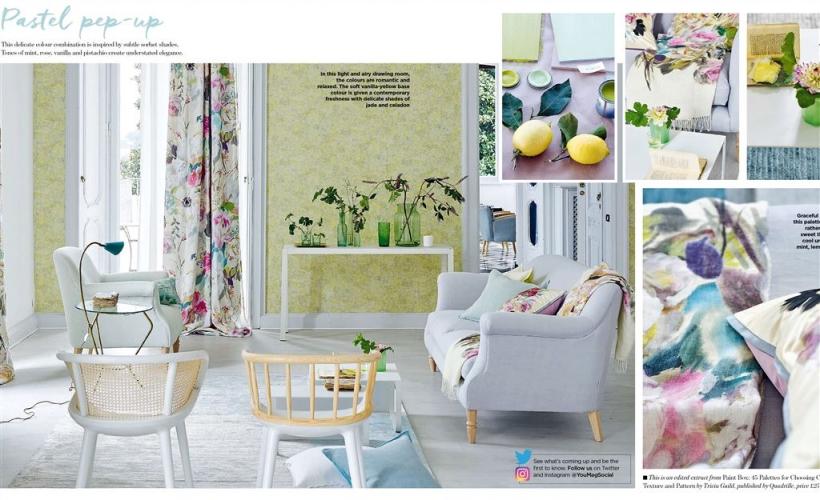 “I would like to share with you the way I choose colours, I love to put them together in a palette, then use this in a mix of plains, pattern and texture to evoke the mood I seek in a room.