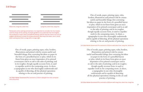 Within each chapter, there are sections devoted to particular principles or problems, such as selecting the right typeface, leading and the treatment of numbers.