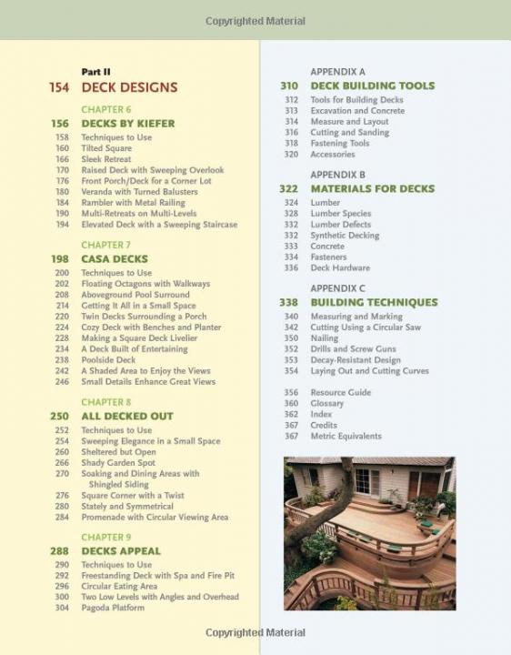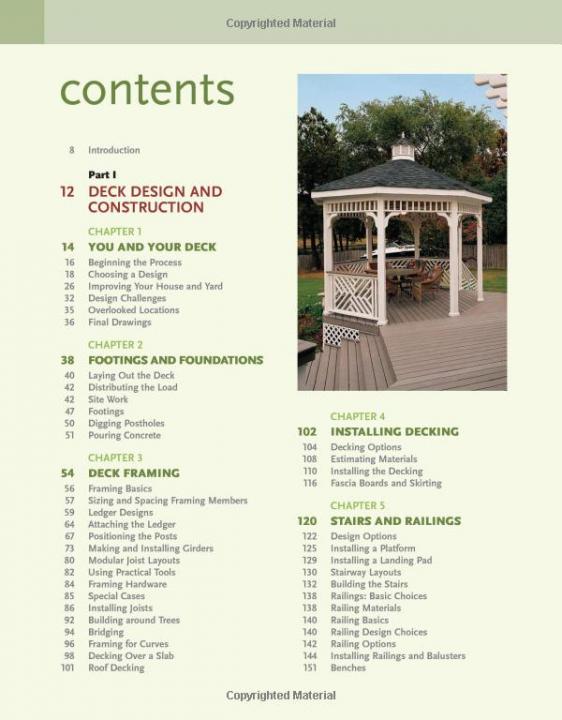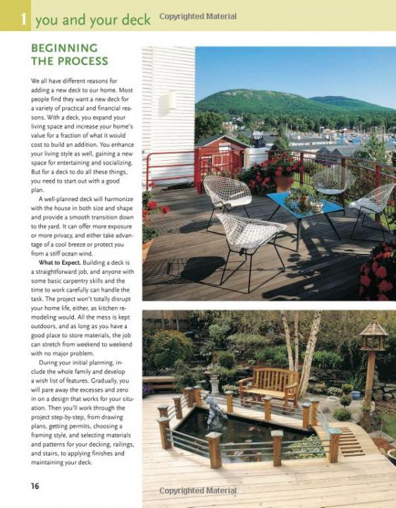 - Includes dozens of inspirational photos of finished decks