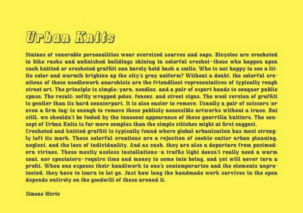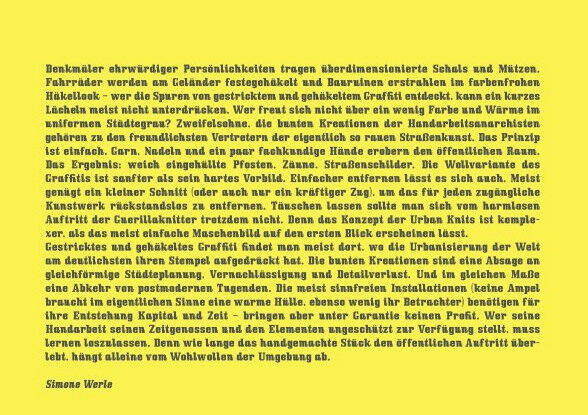 The latest urban street art doesn’t involve paint cans, stickers or wallpaper paste - but knitting needles and wool - as can be seen in this book filled with eye-popping images.