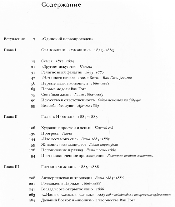 Первый том "Ван Гог. Полное собрание живописи" содержит 381 цветную иллюстрацию и 97 черно-белых. На протяжении всех 300 страниц книги прослеживается творческая эволюция художника, начиная с октября 1881 года вплоть до его переезда в Париж. Там в течение 2 лет между мартом 1886 и февралем 1888 года он создал более 200 картин.