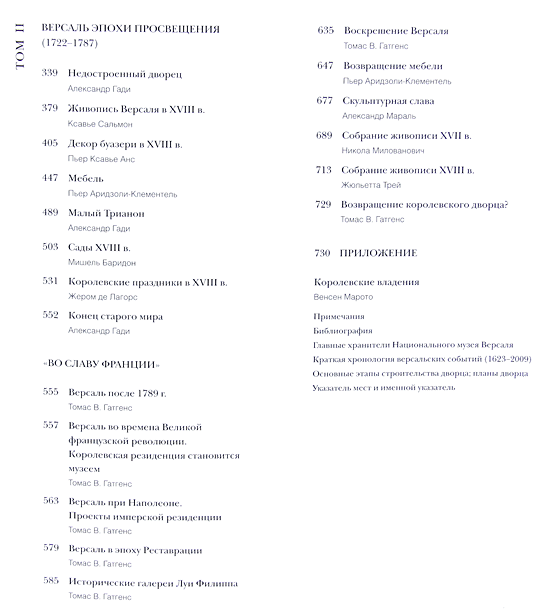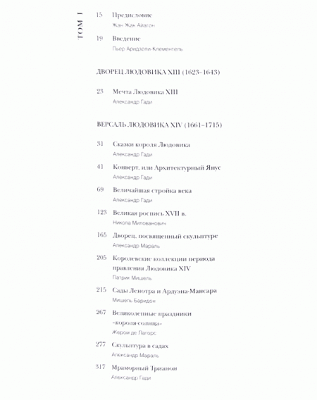 В данное издание вошли исторические очерки, основанные на достижениях современной науки, а также серии великолепных фотографий. Оно содержит в себе подробные статьи различных авторов, среди которых есть хранители музея, специалисты в области архитектуры, живописи, скульптуры, садово-паркового искусства. Немалое внимание уделено музейным коллекциям Версаля, в том числе и тем, которых ныне уже не существует, а также версальским праздникам времен единоличного правления Людовика XIV. В соответствии с хронологией читатель сможет ознакомиться с проектами и искусством эпохи Просвещения и узнать много интересного о столь важном для Версаля XIX в. Хронология охватывает и XX в. - время, когда проводилась реконструкция дворца и примыкающих к нему зданий. Эта книга станет прекрасным подарком каждому, кто хочет узнать о Версале как можно больше и осознает, что открытия бесконечны и никогда не будут исчерпаны до конца. Версаль - это не только сокровище Франции, но и величайшее культурное наследие всего мира.
