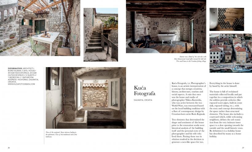 Classic jewels like the Iberian finca or the Scandinavian city loft make the hearts of design aficionados beat faster. Outdoor enthusiasts are thrilled by exceptionally designed tree houses or exclusive alpine huts, while individual travelers enjoy temporary bliss in stylish redecorated or converted sheds or former mills and harbor cranes. All projects presented in this architecture and travel guide inspire architects as well as globetrotters and are at the same time representative of the diverse beauty of the old continent.