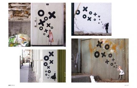 This book is XOOOOX’s first monograph. It focuses mainly on his portraits of female models that he prefers to stencil or wheat-paste onto surfaces of older buildings scarred by the passage of time. The contrast between the strikingly beautiful women and the crumbling walls is a fundamental aspect of his creative vision.