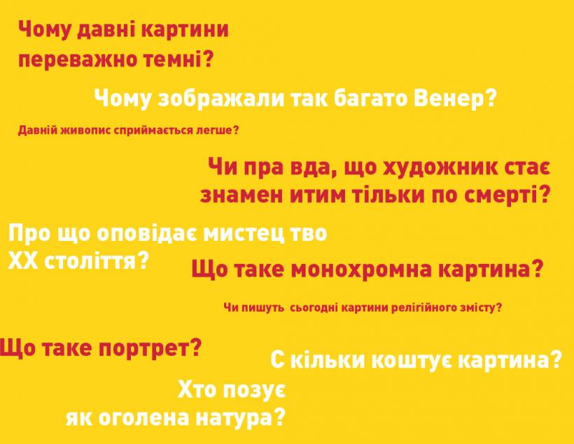 На найбільш поширені й актуальні питання запропоновано лаконічні відповіді, покликані задовольнити цікавість і заохотити до нових пошуків. Це конспект, путівник, довідник і мистецький альбом водночас, який можна ретельно вивчати вдома, нашвидкоруч гортати у транспорті чи розглядати в парку.