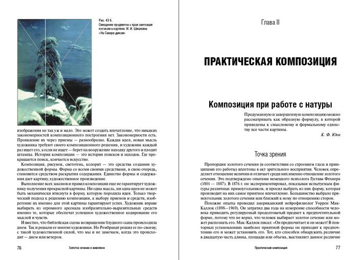 В книге в доступной и увлекательной форме изложены законы зрительного восприятия и композиционного построения изображения. Показана роль золотого сечения в создании композиции произведения и методы построения золотого сечения. Даны рекомендации по практическому применению золотой пропорции при создании целостной гармонической формы, наиболее полно выражающей содержание произведения живописи и удовлетворяющей потребность человека в прекрасном.